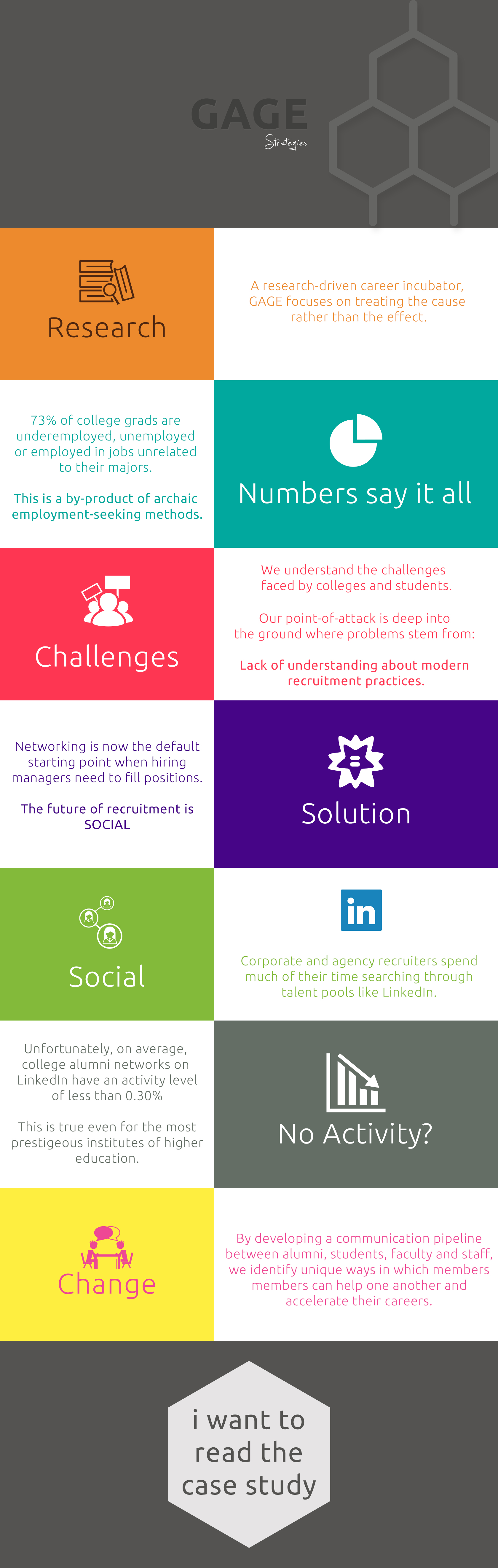 GAGE is a rather unique consulting company serving clients in the educational sector. Back in 2001 they helped pioneer the NYC co-working and collaborative office space sector and provided thousands of startups the necessary tools, network and flexibility that enabled many of them to succeed. For this particular project, GAGE Strategies was developing a special program to create social ecosystems on LinkedIn for educational institutes. We helped them with web copy, design concepts as well as the post-signup landing page. A sample of what we did for them can be seen below.